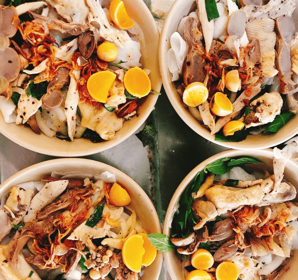 Bánh ướt mềm dẻo nóng hổi rất hợp với những miếng thịt, miếng lòng gà tẩm ướp thơm ngọt, chắc lứa của những con gà thả vườn. Đã thế còn có thêm chén nước mắm pha chế đậm đà ngon miệng – mảnh ghép cuối cùng tạo nên sự tròn vị cho món ăn.