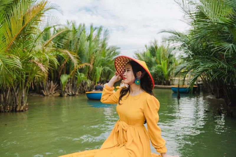 Đến với rừng dừa bảy mẫu - một địa điểm check-in Hội An mà khiến du khách không khỏi ngỡ ngàng trước bạt ngàn dừa nước và những ngôi nhà mái thấp được làm hoàn toàn bằng dừa. Còn gì thú hơn, khi chúng ta được chèo thuyền trên các con rạch để tận hưởng thiên nhiên trong lành, ngắm nhìn những chú cá tung tăng bơi lội và những đàn chim cò làm tổ trên các rặng dừa xanh ngắt.
