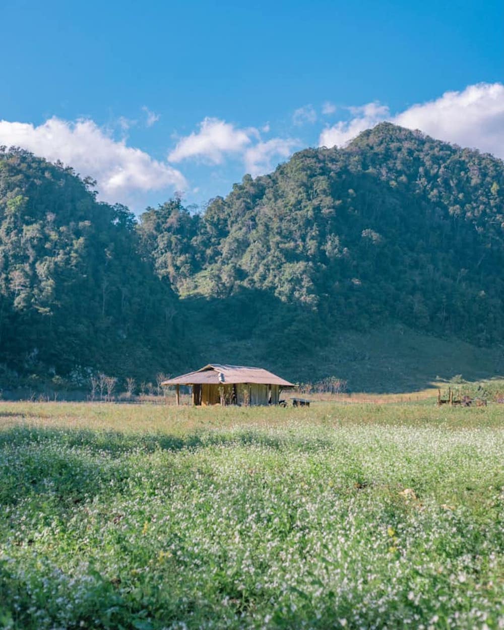 Khi bước vào những tháng thu đông, du khách sẽ được chìm đắm trong những khung cảnh yên bình cùng những đóa hoa tam giác mạch nở rộ trên các đồng cỏ xanh ngắt.