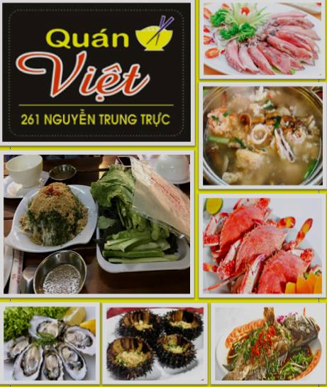 Quán Việt chuyên phân phối các loại hải sản giá sĩ về Sài Gòn, Hà Nội và các tỉnh nên khi ăn ở đây hải sản giá rất hợp lý. Đặc biệt quán có nguồn gốc từ Bãi Khem nên món gỏi cá trích ở đây là tuyệt cú mèo, ngoài ra món cũng rất nổi tiếng với món Súp Nấm Tràm, Cơm Chiên Ghẹ. Quán có không gian gia đình, có bồn hải sản tươi sống, có máy lạnh nếu ăn vào những ngày trưa nóng bức và đặc biệt khi bạn phượt với gia đình, có trẻ nhỏ vào những ngày trời mưa bạn có thể nhờ Quán cho xe đưa rước miễn phí