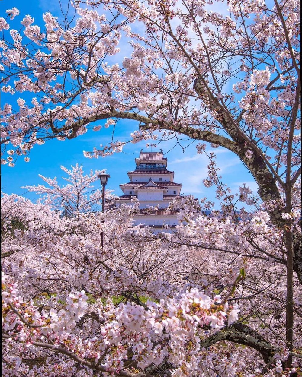 Hoa anh đào kết hợp với khung cảnh thiên nhiên và truyền thống Nhật Bản sẽ mang đến cho du khách những trải nghiệm khó quên (Nguồn: Instagram @japan.undiscovered).