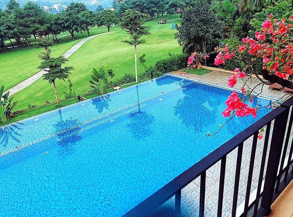 Bể bơi rộng nhất Sân golf tam đảo, có làn bơi cho trẻ em. Đài phun nước ánh sáng ấn tượng thích hợp cho các buổi Pool party đúng nghĩa