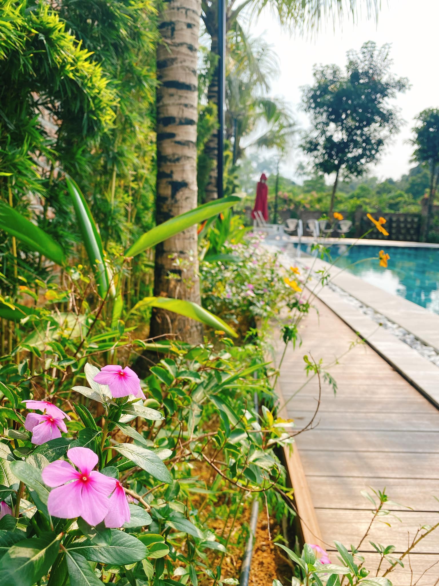 - Khuôn viên Homestay gồm có suối cá Koi, khu uống trà, sân nướng BBQ, bể bơi và phòng ăn miễn phí, khu vui chơi trẻ em
