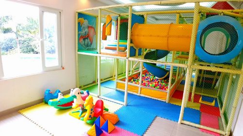 Phòng vui chơi chuyên nghiệp gồm nhà bóng, cầu trượt, đường ống, lưới leo trèo,...