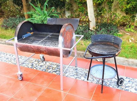 Khu vực bếp nướng BBQ và bàn ăn trong nhà và ngoài trời (có xoong, chảo, nồi cơm điện, ấm siêu tốc, dao, nước rửa bát, 1 bếp từ, vỉ nướng, 2 bếp nướng than BBQ..)