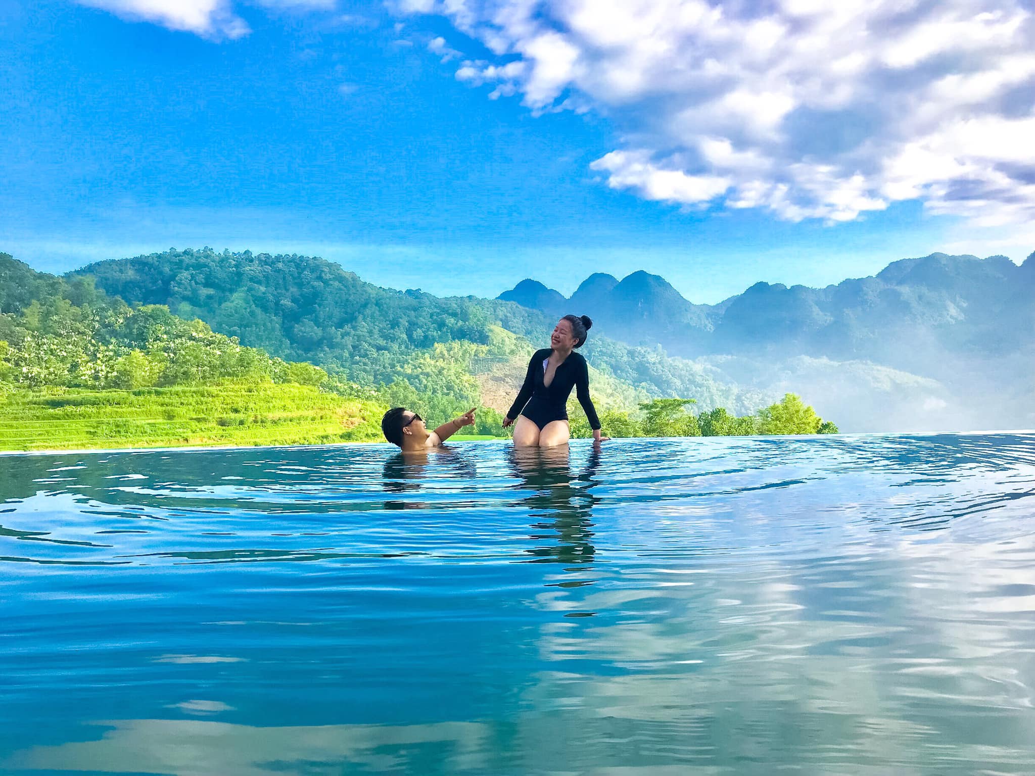 ✅ Sử dụng 02 bể bơi vô cực tầm nhìn toàn cảnh thung lũng Puluong.
