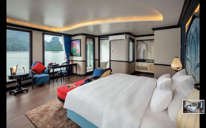 Những phòng nghỉ trên du thuyền đều được trang bị đầy đủ tiện nghi chuẩn 5 sao, cung cấp các phòng với điều hòa, két an toàn và Wi-Fi miễn phí, mỗi phòng đều có phòng tắm riêng, đảm bảo sự riêng tư và thoải mái cho du khách.
