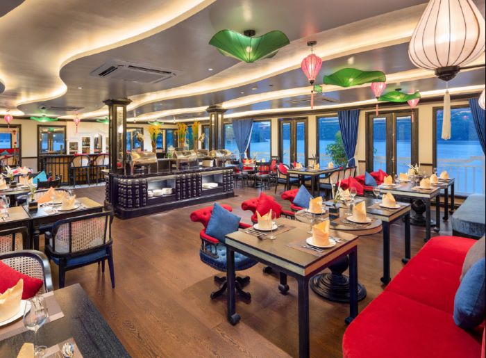 Từ nhà hàng đến từng phòng trong du thuyền với những tiện ích chuẩn 5 sao.