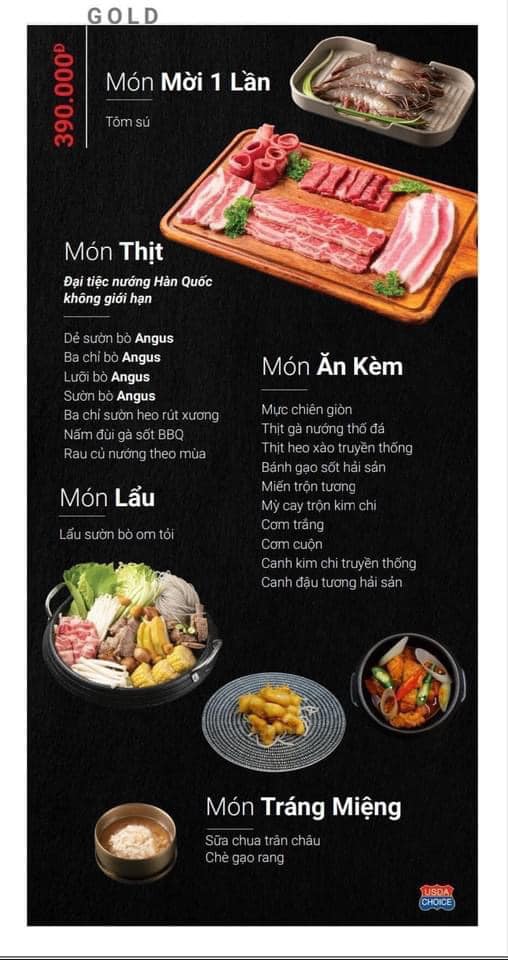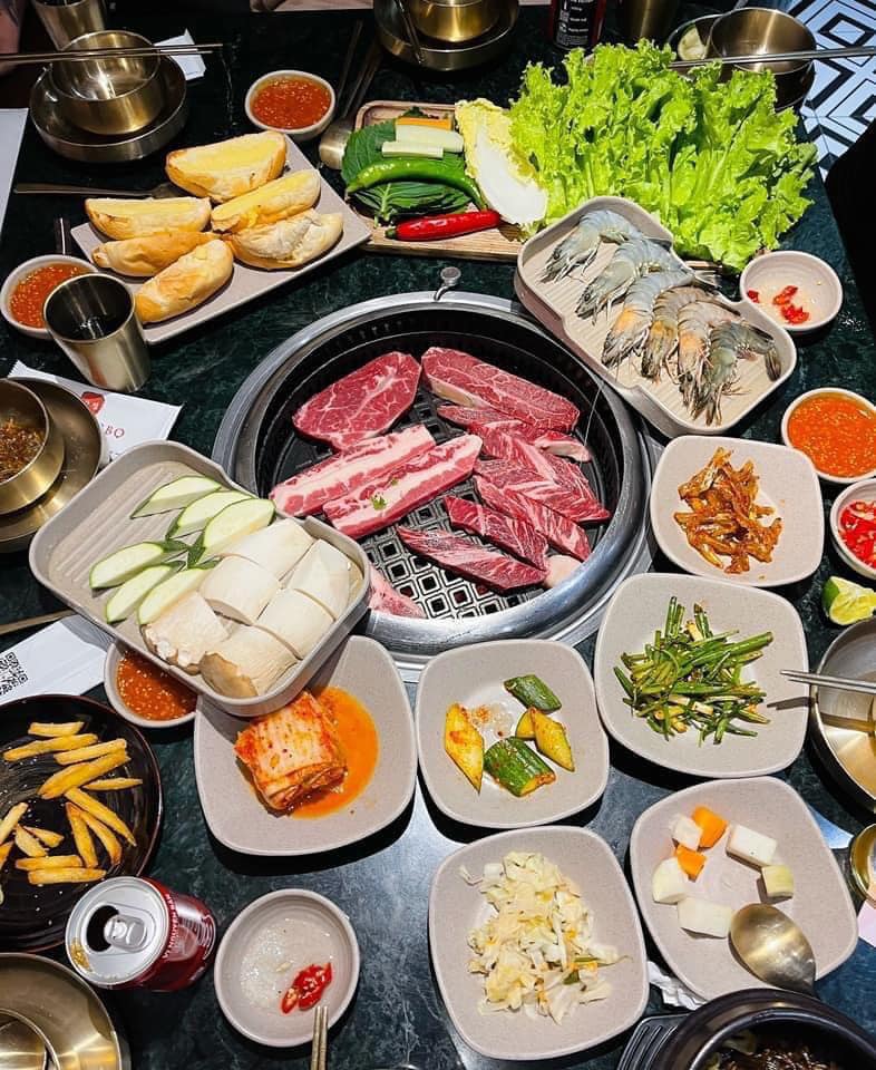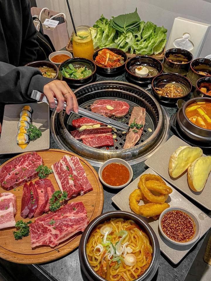 Menu đồ ăn đa dạng với thịt nướng chuẩn Hàn Quốc giữ nguyên vị tươi ngon của thịt không tẩm ướp, Lẩu sườn bò om tỏi ngon trứ danh, Lẩu ốc Soju đặc sắc,…